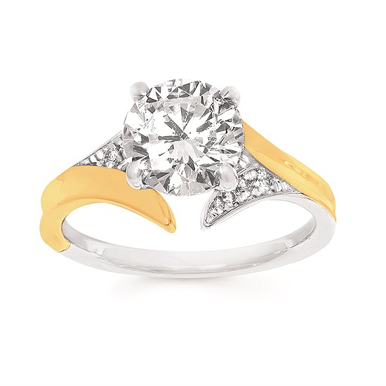 Engagement Ring Modern Bridal: 0.06 Ctw. Diamond Semi Mount shown with 2 Ct. Round Center Diamond in 14K Gold