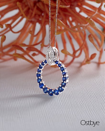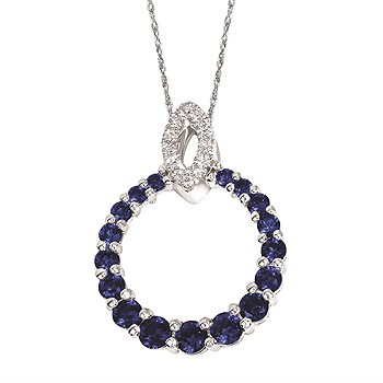 1 1/2 Tgw. Diamond & Sapphire Pendant In 14K Gold With 18" Chain